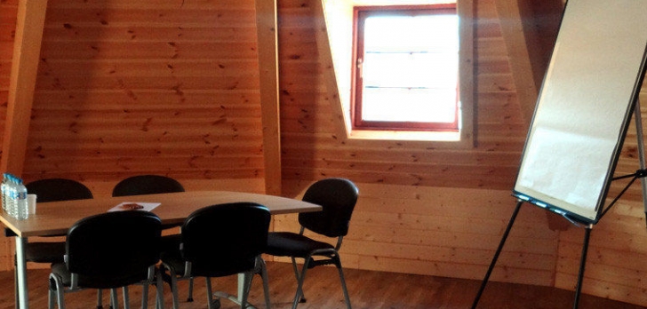 Nichée en pleine nature, cette Eco-hutte vous permet d'organiser votre événement dans le respect de la nature grâce au projet Eco-sensible. La salle de séminaire équipée d’un rétroprojecteur, d’un paperboard et du Wifi peut accueillir jusqu’à 30 personnes.