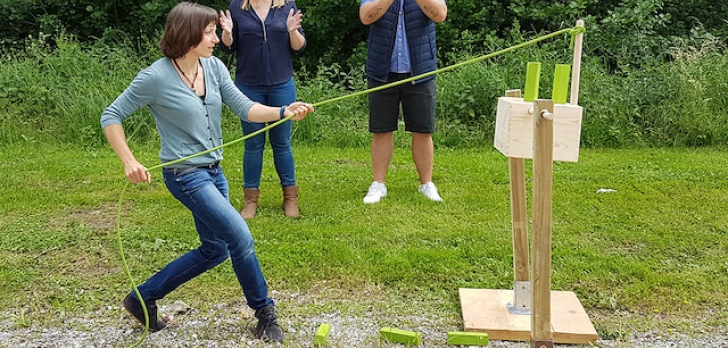 Pour arriver à la célèbre épreuve finale des poteaux qui exige de l'agilité et de la résistante physique et mentale, vos collaborateurs devront valider les épreuves précédantes en développant leur cohésion et leur esprit d'équipe.