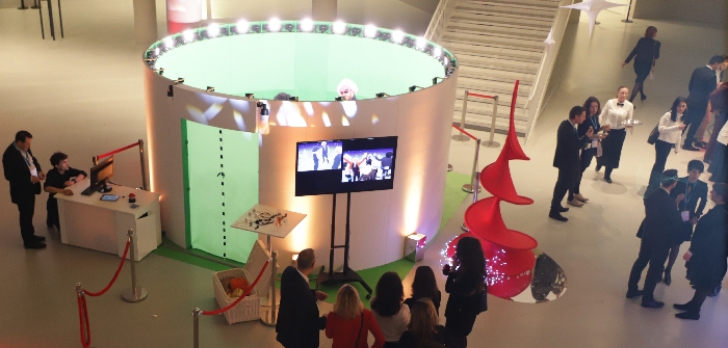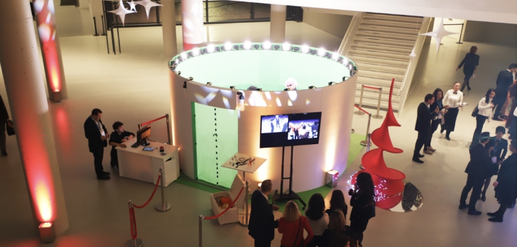 Chaque utilisateur peut choisir sur notre interface tactile le fond de son choix pour une incrustation 360°. Déguisez ou non, seul ou en groupe (jusqu’à 20 personnes max) entrez dans le Studio de 4,40 mètres de diamètre. Réalisez votre photo/vidéo 360°. Votre photo est directement diffusée sur un grand écran situé à l’entrée du studio et sur votre boite mail en moins d’une minute. Vous profitez donc d'un processus simple et rapide clé en main !