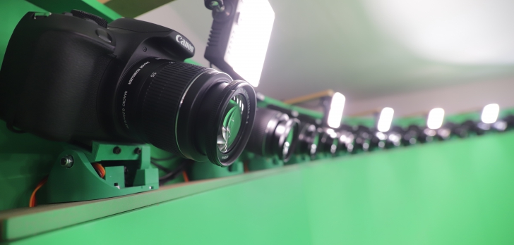 72 appareils photos Canon qui sont automatisés et disposés de sorte à avoir le rendu le plus fluide avec la meilleure qualité possible sans nuisances extérieures.